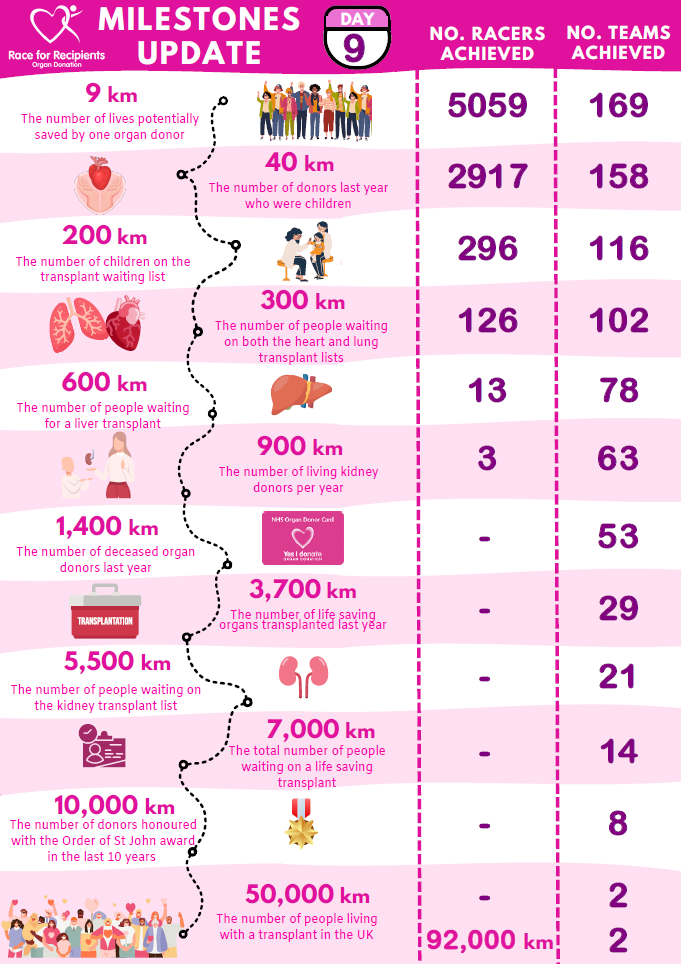 The #Race4Recipients challenge has been designed to incorporate all of the above whilst getting people active and we are really excited to confirm that following the huge success last year, #RaceforRecipients 2024 remains a National event and it is open to everyone, everywhere to join!